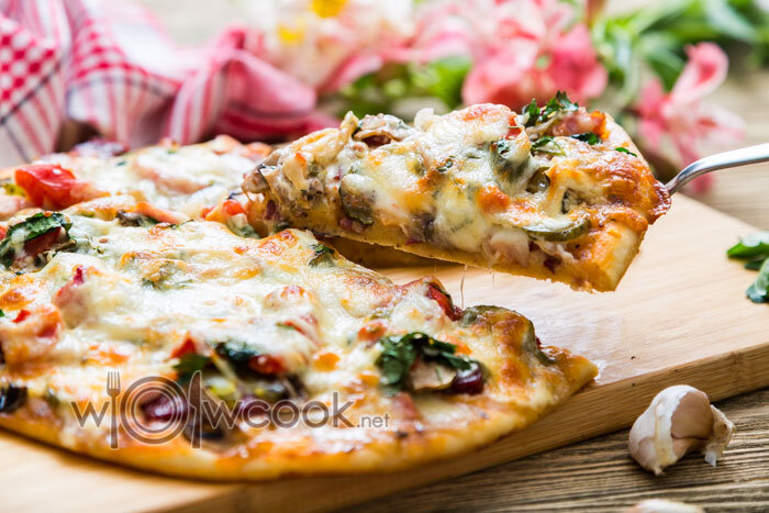 20. Как увидите, что сыр расплавился и края теста подрумянились - пора вынимать. Подаем пиццу с пылу с жару.