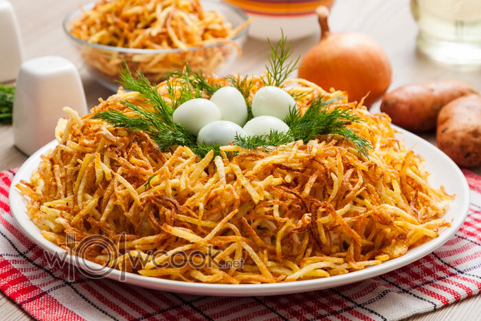 Ингредиенты: для приготовления маринованного лука: Классический рецепт салата "Гнездо глухаря" с курицей 1. Куриную грудку (филе) промываем, погружаем в кастрюлю с холодной водой. Не солим, чтобы курица была сочной. Отвариваем на среднем огне до готовности. Параллельно ставим отвариваться яйца, погрузив их в кастрюлю с холодной водой. Время приготовления яиц - 10 минут с момента закипания. 2. Лук очищаем, промываем и нарезаем мелкими кубиками. 3. Погружаем лук в стеклянную миску или глубокую тарелку для маринования. Заливаем уксусом, добавляем соль и сахар. Хорошенько перемешиваем, накрываем крышкой и оставляем мариноваться при комнатной температуре. 4. Соленые огурцы промываем и нарезаем мелкими кубиками. 6. Сыр натираем на мелкой терке. 7. Измельченные огурцы и сыр переносим в глубокий салатник. 8. Куриное филе проверяем на готовность, протыкая ножом. Если оно легко протыкается и при этом не выделяется мутный или розоватый сок - куриное филе готово. Снимаем его с огня, прикрываем