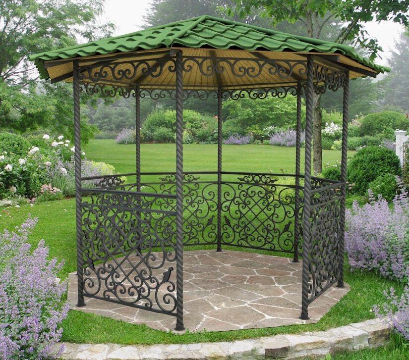 На даче ее владельцы не только занимаются огородом и садом, но и отдыхают от городской суеты, наслаждаются природой. Помочь в этом может беседка, избавляющая от жары. Её можно купить или построить своими руками. Конструкции из металла простые и изящные, хорошо дополняют любой тип ландшафтного дизайна. Преимущества и недостатки беседок из металла Металлические сооружения делятся на переносные и стационарные. Первые устанавливаются на грунт, бетон, плитку и легко разбираются и перемещаются на другое место. Для вторых требуется столбчатый или ленточный фундамент. Беседки из металла обладают рядом преимуществ: При выборе необходимо учесть и минусы: Перегрев можно снизить, если посадить по периметру вьющиеся растения. Образование ржавчины исключается при своевременном обновлении краски или другого защитного покрытия. Как сделать металлическую беседку своими руками Конструкция может быть открытая (даже без парапета), полузакрытая или закрытая. Своими руками проще всего строится беседка из м