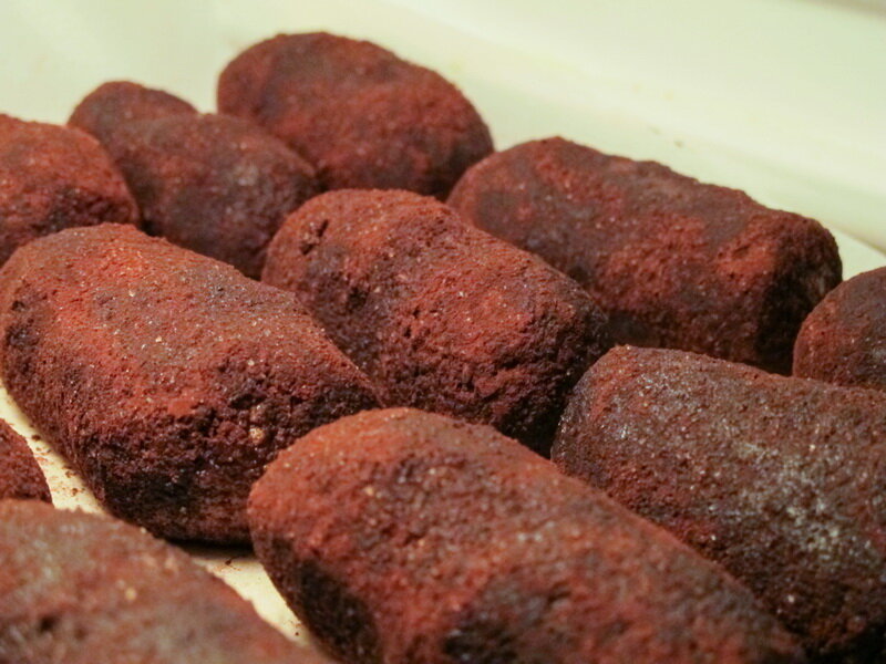 Какао-порошок (для обваливания) — 60-80 г Взбить желтки с сахаром (две трети) в тягучий светлый крем.