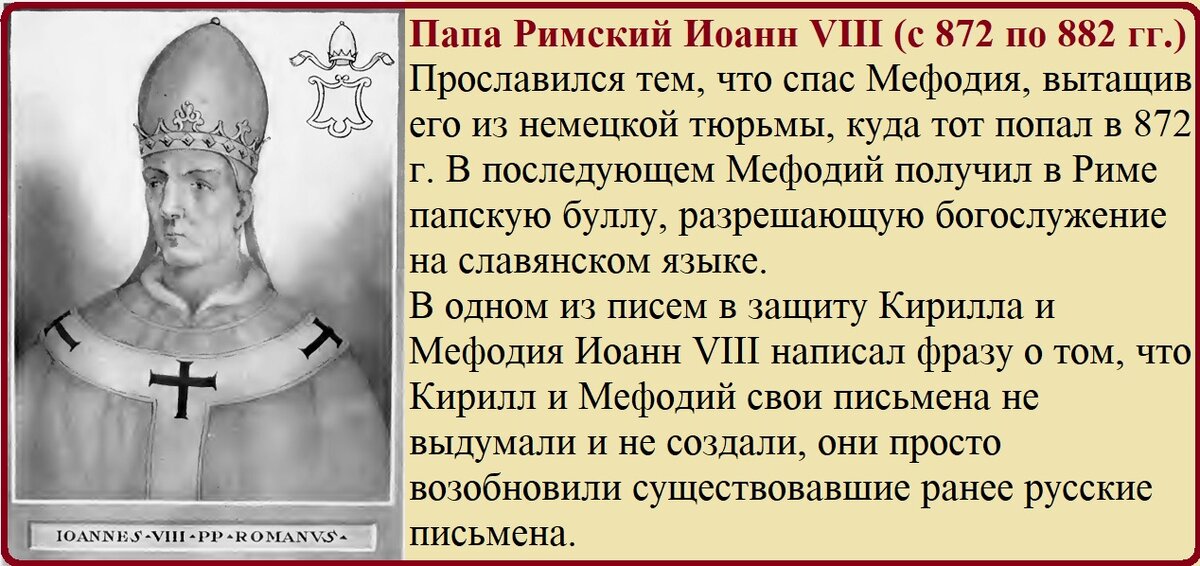Кстати, РПЦ изначально также знала о том, что у славян была своя собственная письменность еще до Кирилла и Мефодия. В справочном богословском Церковно-Историческом словаре протоиерея Леонида Петров за 1889 г, имеется следующая запись: «Россы, варяжское племя, жили в южной России; с Византией то вели дела торговые, то воевали. От них заимствовал буквы Св. Кирилл». Но РПЦ предпочитает особо не афишировать эту информацию.