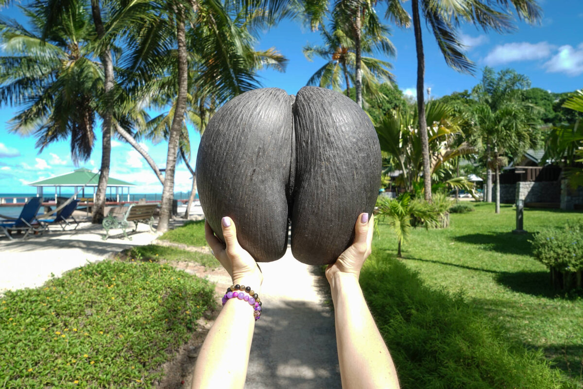 На Сейшельских островах растет очень экзотическое растение – пальма коко де мер. Этот эндемик живет только на Сейшелах. Чем же он привлекает столько внимания? Орех коко де мер бьет все мыслимые рекорды, но его главная особенность – весьма необычный внешний вид. При первом взгляде на очищенный от кожуры орех становится ясно, из-за чего весь сыр-бор: плоды очень похожи на женские бедра. Кстати, раньше орех назывался по-научному «Lodoicea callipyge», а «callipyge» с греческого – это «красивые ягодицы». И это еще не все. На мужских пальмах плоды имеют вытянутую фаллическую форму. Поэтому пальмы коко де мер, произрастающие только на островах Праслин и Курьез, считаются главными достопримечательностями Сейшельских островов. Ева и афродизиак Естественно, такие необычные растения окружены множеством легенд. По одной из них, остров Праслин и был когда-то Эдемом, а коко де мер – это тот самый запретный плод, которым соблазнилась Ева. По другой легенде, по ночам пальмы передвигаются и ищут себе п