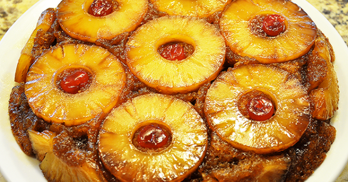 Нам понадобится: Способ приготовления: 1. Яйца взбить с сахаром, добавить мягкое масло, еще разок хорошенько взбить, чтобы разбить комочки масла. Затем добавляем йогурт и лимонную цедру. Добавить муку, смешанную с разрыхлителем, и вымесить тесто. 2. Готовим карамель. В сотейнике нагреть сливочное масло, сахар и лимонный сок. Масло будет плавиться, сахар — румяниться, нужно греть до тех пор, пока масса не приобретёт однородность и карамельный цвет. 3. Вылить карамель на дно формы, стенки формы смазать маслом. Поместить в неё дольки ананаса. 4. Поверх всего этого вылить тесто и отправить в духовку, заранее прогретую до 180 °C, минут на 20. Готовность проверить деревянной палочкой. Готовый пирог вынуть из духовки и оставить буквально на пару минут, чтобы всё, что кипит и бурлит внутри формы, прекратило свою бурную деятельность. Дольше оставлять не стоит, чтобы остывающая карамель не застыла намертво. Накрыть доской и перевернуть. Приятного аппетита! Если вам понравилось или хоть немн