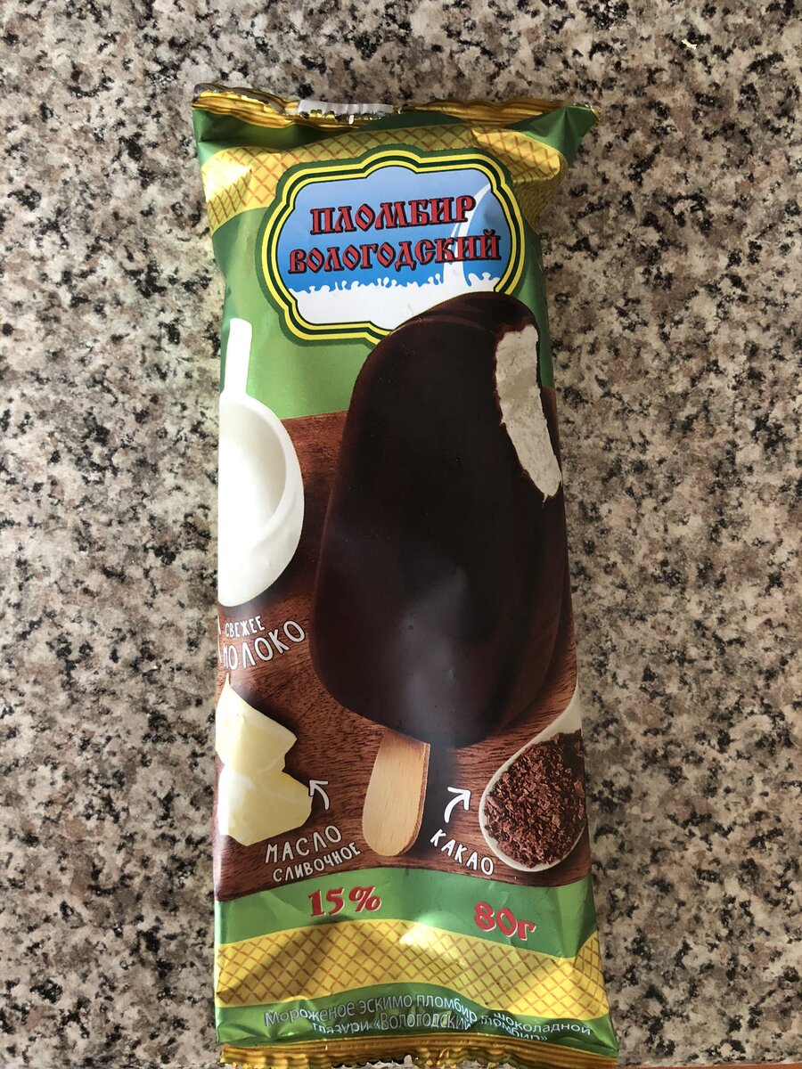 Всем доброго времени суток. Сегодня рассмотрим эскимо Вологодский пломбир, от компании Айсберри. Приступим. 1. Дизайн: Красивый, гармоничный, ничего лишнего. Состав и вся важная информация хорошо читается, аж глаза не напрягаются. И по этому данное эскимо заслуживает 5/5 баллов. 2. Состав: Состав очень хороший. Присутствует молочный жир, а не его заменитель. Состав пломбира на первом месте: молоко коровье цельное, потом цельное сгущенное + ещё сливочное масло присутствует. Есть сухое молоко, но оно стоит практически в самом конце состава. Моя оценка 8/10. 3. Цена Покупал в семье, к сожалению чек забыл взять, но цену его помню - 69,90 руб. Вес данного изделия 80 грамм. И так, переведём цену за 1 кг = 835,75 руб. Цена/качество 5/5 Качество продукта хорошее, цена отличная, если вспомним прошлый обзор то это небо и земля. 4. Внешний вид + вкус Внешний вид хороший, что заявлено на упаковке, то и внутри 5/5 Как не странно, но мороженое понравилось. Ощущался вкус молока, сливочно