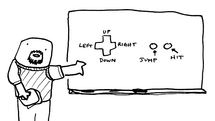 Управление на трех кнопках. Влево, вправо и прыжок. Обсуждаема кнопка взаимодействия с окружением.