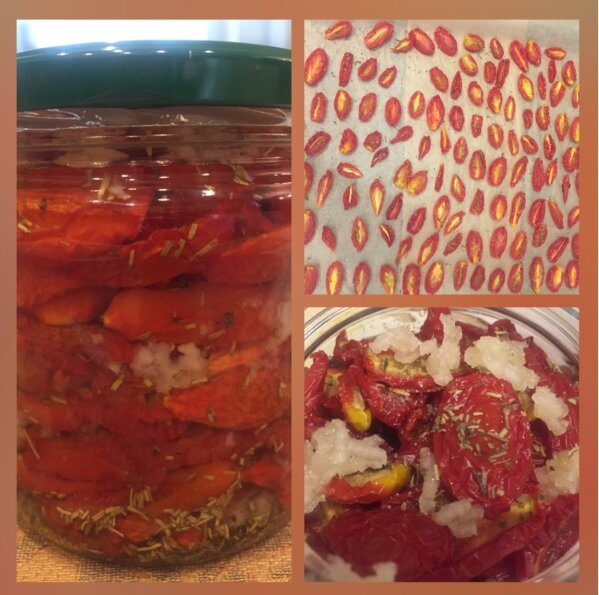 Каждый, кто сидит за моим столом, попивая Шэ, заедает его вялеными помидорками, а затем, умываясь слезами, умоляет дать рецепт. В инэте полно, но "всё не то, всё не то". А я делаю их уже больше десятка годков, прошла так сказать, и огонь, и трубы. Короче, выкладываю секреты, пользуйтесь, девы. 1. Выжидаем август, когда узбеки будут раздавать помидорины черри чуть ли не запросто так. Покупаем 50 кг (шучу, хотя, спустя пару годков вы будете брать их оптом :) 2. Моем, сушим, пополам нарезаем 3.кладем на пергамент на противень. Посыпаем солью, чуток сахара и приправы (какие нравятся, идеально подходят травы прованса или кинза+базилик). 4.ставим в духовку на 60 градусов с конвекцией на 10 часов (и идем спать, утро вечера сами знаете что). 5. банки моем, парим, стерилизуем (я просто ставлю в духовку на 50 гр увеличивая до 100 на минут 15) 6.в банку кидаем слоями: помидоры, трава, чеснок зубцами, чуток соли, снова помидоры и т д. Все заливаем маслом, доведенным до кипения (растительным, можно