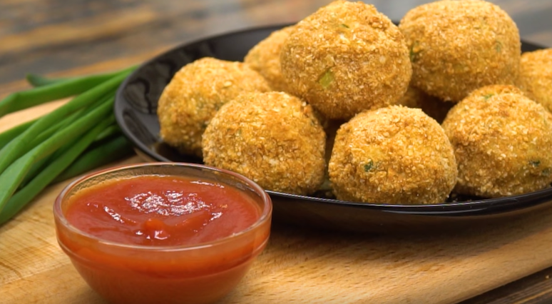 Обязательно попробуйте этот рецепт. Пряная картошечка и тянущийся сыр, все это сочетается с хрустящей, запеченной корочкой. Такое блюдо, будет отличной закуской, перекусом или даже гарниров. Дети оценят!Начнем... Продукты: Картофель отварной - 500 грамм Яйца - 2 штуки Зелень, соль, специи. Сыр- 90 грамм Сухари панировочные - 50 грамм К картофелю добавить одно яйцо, нарубленную зелень, соль и специи. Размять все толкушкой до состояния пюре. К панировочным сухарям добавить специи и соль по желанию, перемешать. В отдельной миске взбить вилкой яйцо. Так же по желанию можно добавить специи и соль. Сыр нарезать на небольшие кубики. Кубик сыра завернуть в тесто, придавая форму шарика. Окунуть шарик в яйцо, затем обвалять в сухарях. Выложить шарики на противень, устеленный пергаментной бумагой. Выпекать 15 минут, при температуре 200 градусов. Приятного аппетита! Делитесь своими отзывами, подписывайтесь на канала и ставьте лайки. Всего доброго! *** Статья подготовлена при использовании мат