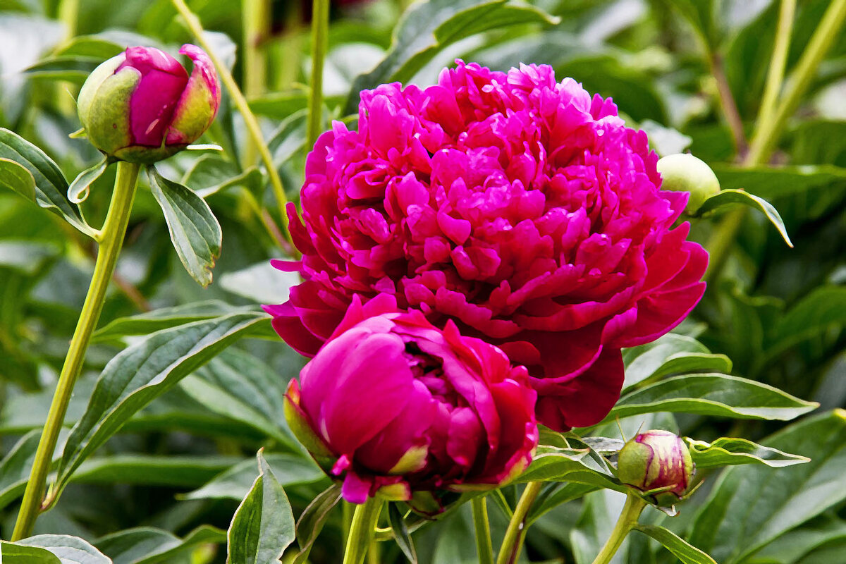 Многим садоводам известно, что пионы не любят пересадку, и как правило, в год деления куста (если процесс был по весне) или на следующий (если осенью) пионы предпочитают не цвести, а заниматься «обустройством». В чём же причина? Пион – роскошный и очень древний цветок. По красоте, изяществу и нежности он – вполне достойный конкурент розе, и по праву носит звание короля цветов. Были даже времена, когда пионы разрешалось выращивать только в императорском саду, простым смертным это запрещалось. И до сих пор букет пионов несёт собой пожелание благополучия. Естественно, пионами и лечились, и до сих пор популярностью пользуется настойка его корней, которая хорошо справляется с нарушениями сна. Размножать можно семенами (долго и не факт, что полученное растение переймёт все свойства родителя), отводками, делением куста (проще всего, но можно на год остаться без цветов), черенкованием. Многие садоводы после цветения обрезают листву чтобы получить больше бутонов и крупнее цветки. Тут важный м