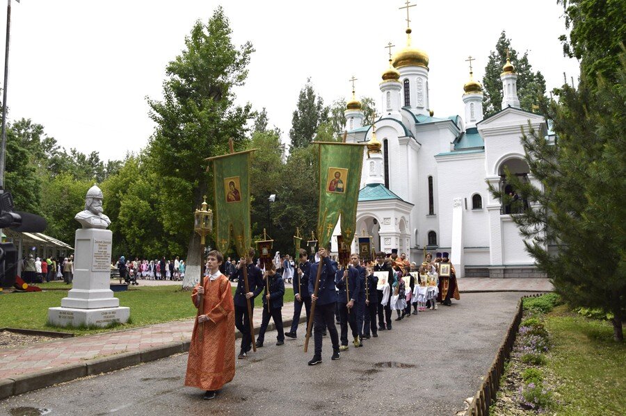 По традиции этот важный день начался с Праздничного молебна и Крестного хода, который возглавил директор гимназии, настоятель Архиерейского подворья протоиерей Димитрий Лескин в сослужении со священниками Архиерейского подворья. Затем прозвучала Актовая речь, в которой исполнительный директор гимназии матушка Юлия рассказала о том, какими многочисленным победами, свершениями, важными событиями и яркими праздникамибыл наполнен 2018-2019 учебный год. Гимназия гордится своими учащимися: средний балл по гимназии составляет 4,6 по всем предметам, а по предварительным итогам учебного года 54 гимназиста учится на «отлично». Результаты по ЕГЭ в прошлом году по большинству предметов значительно превосходили областные и городские результаты. Выпускники последнего выпуска поступили в лучшие российские вузы – от Москвы до Владивостока. При этом воспитанники гимназии проявляют свои таланты в самых разнообразных направлениях – от участия и побед в региональных и всероссийских олимпиадах, до призовых мест на творческих конкурсах и фестивалях.