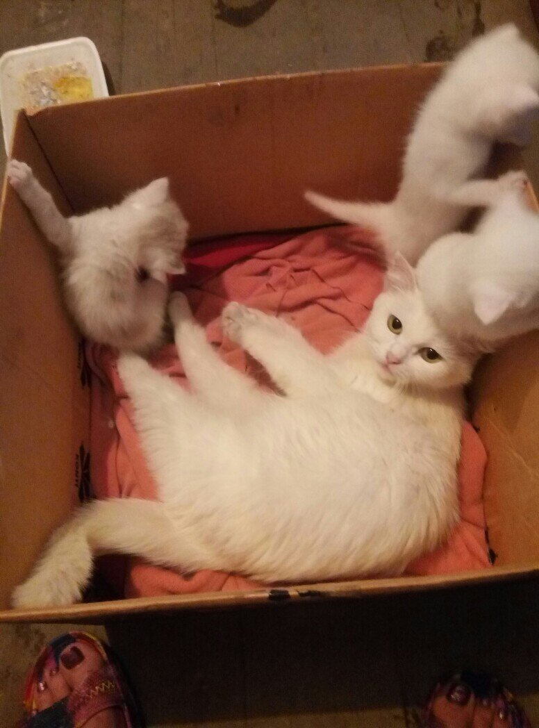 У нас в домашнем мини-приюте Ирины С. прибавление.((( Знаю, что вы переживаете за собачек этого приюта: Собаки Надя и Альфа: что делать, когда не везет? 22-го числа волонтер звонила врачу по поводу Альфы, не знает насколько правда, что вроде бы грибок на шишке, что на лапе у Альфы, лечение гармональное долгое, но если через три недели не улучшится, то удалять. Она просто сейчас очень много пьет воды и ест, но это из-за таблеток, как говорит врач. Хотя хозяйке кажется, что ушла отечность. Может правда нужно время и длительное лечение. 26-го числа женщина сказала, что у Альфы, всё на месте, может времени мало прошло, но и не увеличивается и не уменьшается. Очень не хотелось бы оперироваться, но еще дней десять нужно пить таблетки, а потом к врачу. Надя с Мотиком не мирятся, в тот день загнала его на дерево, и он бедный сидел под дождем, боялся спустится, масса тела мешает))) Возвращение Мотика в приют и сезон игр и охоты у котов Теперь ждем врача с отпуска, чтобы уже определить