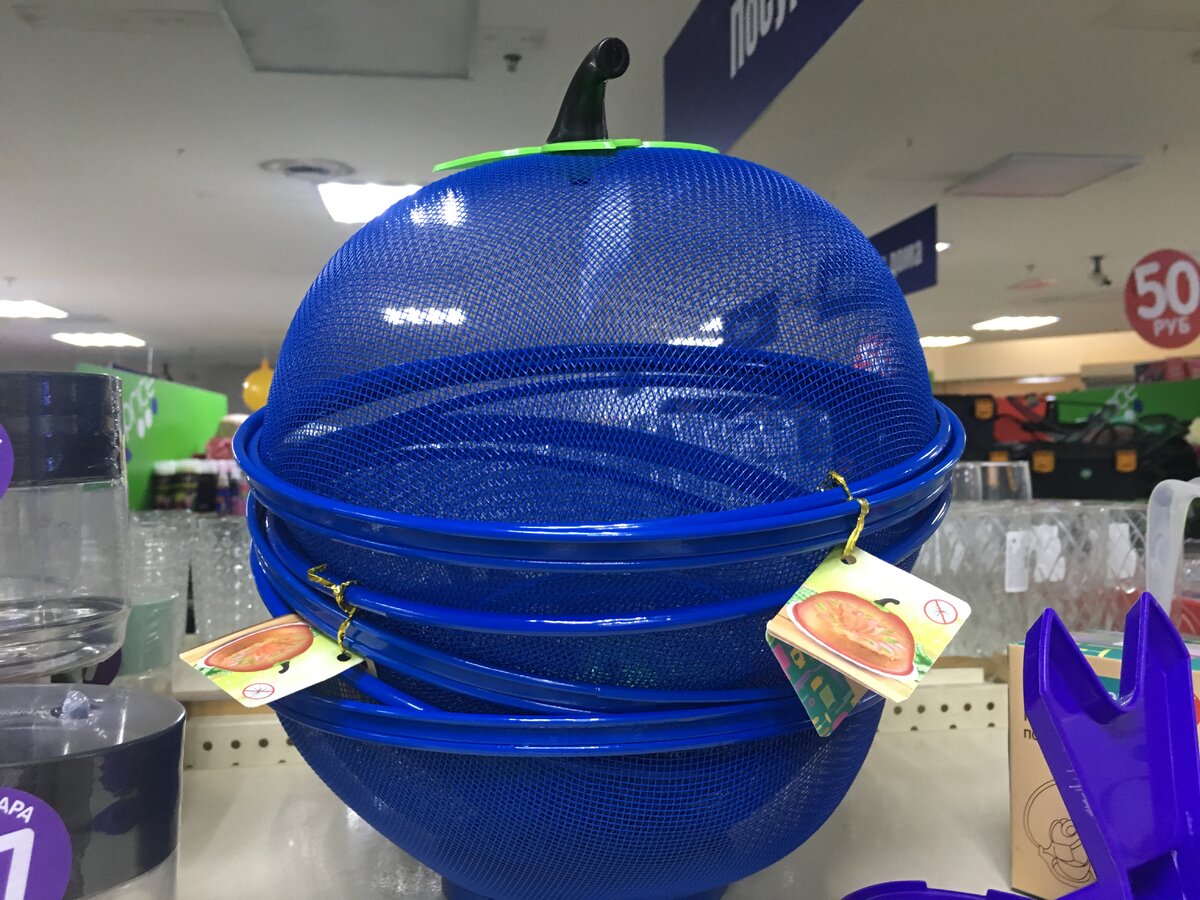 С недавних пор я редкий гость в этом магазине. Я перестала покупать разные дешевые мелочи (авось пригодятся), долго думаю и представляю, куда поставлю рамку для фотографий, которая мне приглянулась, или как часто буду использовать слайсер для нарезки чего-либо. Стала отдавать предпочтение покупке для дома приятной для души, нежели для кошелька, пусть она и стоит дороже. По воли случая я оказалась в магазине сети fix price на другом конце города. В нашем у дома, как мне кажется, выбор не велик, часто встречала пустые полки. Сравнения ради заглянула. Не то, чтобы у соседа трава зеленее, но я осталась под приятным впечатлением. Магазин пообширнее, посвободнее, товаров много, даже есть отдельный «пьедестал» для новинок)) Вот это синее сооружение - корзина для фруктов. Стоит она 199 рублей. , Недёшево, но удобно для пиршеств на улице, даче. Размеры 25 на 23 см. Силиконовая щетка для посуды. Уже не новинка, дата производства на обороте январь 2019. В фикс прайсе у дома подобную не встреча