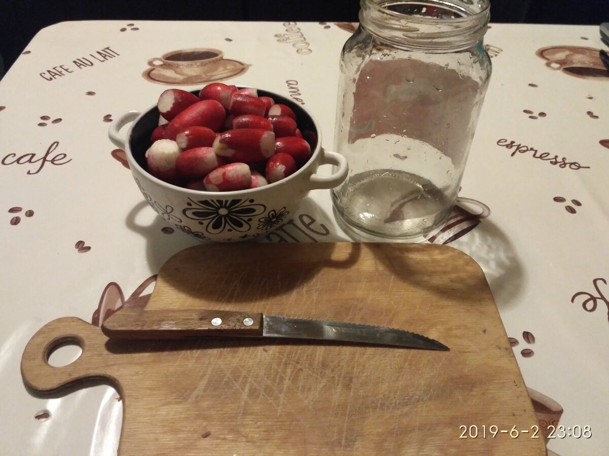 Доброго времени суток товарищи! Сегодня речь пойдет о маринованном редисе, которой является отличной закуской и дополнением к разнообразным блюдам праздничного и не очень стола. Должен предупредить: чрезмерное употребление алкоголя вредит вашему здоровью! На самом деле в приготовлении все до безобразия просто. Для приготовления понадобятся: редис - 500 грамм; вода - 1/2 литра; соль - 1,5 чайной ложки; сахар - 3 чайных ложки; чеснок - 2-3 зубчика; перец горошком - 10 штук; гвоздика - 2 -3 бутона; лавровый лист - 1 штука; уксус столовый - 2 столовые ложки; другие специи - по вкусу. Кстати, маринад для редиса очень напоминает тот который я использую для мидий. С рецептом маринованных можно будет ознакомиться в конце. Первым делом ставим на огонь кипятиться воду для маринада. Забрасываем в нее все ингредиенты кроме уксуса и самого редиса. Тем временем можно приступать к нарезке корнеплода. Конечно же при желании можно добавлять свои любимые ингредиенты в маринад. Если кто то любит по ост