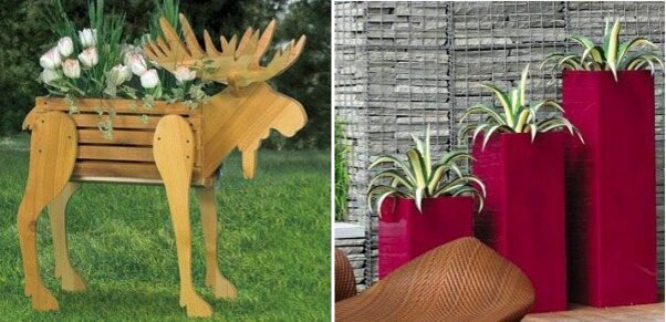 Хочется привнести в «интерьер» сада оригинальности, но нет денег на дорогие дизайнерские вазоны? Наверное, я не ошибусь, если скажу, что эта ситуация обычна для большинства наших соотечественников. Но речь сейчас не о социальном неравенстве, а о том, как сделать оригинальные вазоны для сада из подручных материалов, но чтобы они выглядели не хуже профессиональных! Эффектные красные Конечно, на фото представлены глянцевые вазоны из высококачественного пластика. Но что мешает взять эти модели за идею, сделать такие же из дерева и покрасить их глянцевой краской? По-деревенски, но стильно Доска и брус — отличный материал, доступный в нашей местности и открывающий большой простор для множества стильных и современных идей. Из деревянных ящиков Если в наличии есть деревянные ящики разного формата, немедленно пускайте их в дело. Смотрите, какая красота в итоге может получится! Маскируем колонку габионным «вазоном» Неприглядную колонку можно попробовать обыграть при помощи габионной конструкци