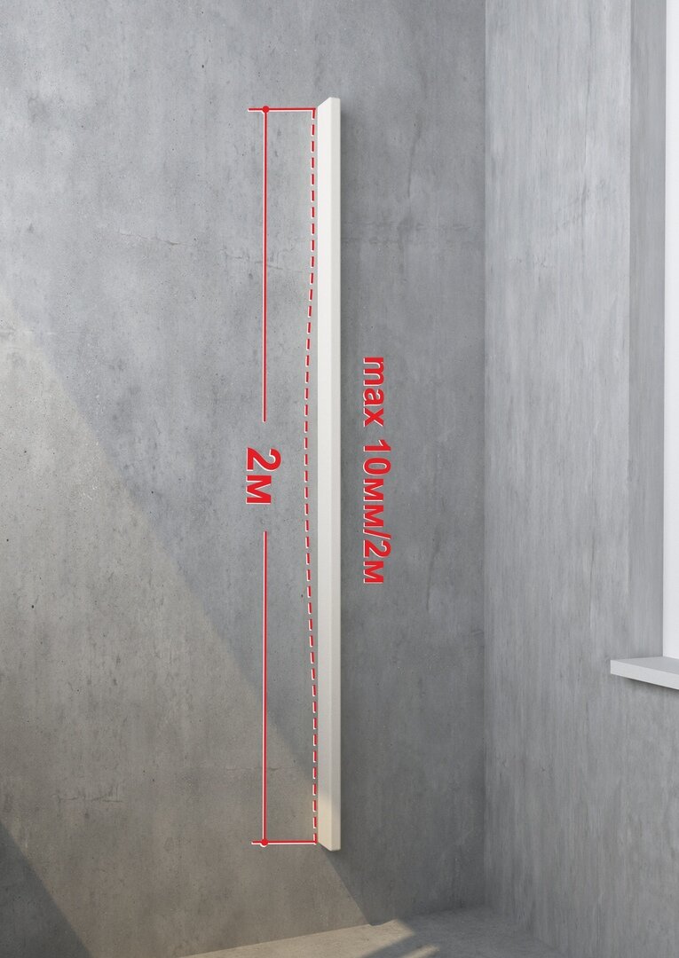 - Основание стен и потолка перед утеплением должно быть выровнено. Чтобы проверить это возьмите 2 метровое правило. Рекомендуемый перепад - не более 10 мм на 2-метровое правило.