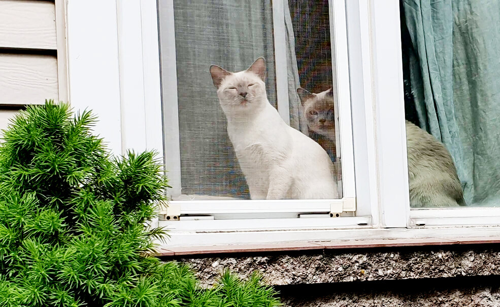Как я ранее уже упоминала в своем блоге, наш кот Степа с детства подвержен страхам: он боится разных шорохов, звуков, звонков... а чужих людей боится просто панически. Второй котик Митя полная его противоположность - он не боится вообще ничего :) В выходные к нам приехали друзья и привезли с собой еще одного товарища, которого раньше наши коты ни разу не видели. Коты приезд гостей пропустили, так как находились в гостевой комнате цокольного этажа, в районе домашнего бара... куда, собственно говоря, мы и отправились с гостями для начала 🍺🍺 :)))))) Коты мирно спали на кровати, благодаря излишней доброте моей мамы, которая не нашла в себе силы вытащить таких уютно устроившихся спать котов. Все котики в принципе умеют спать так, что будить их очень совестно :))) Мы с гостями спустились вниз, в бар. Степка, услышав из комнаты, что среди знакомых ему голосов есть один незнакомый, как обычно впал в панику: на полусогнутых лапах, распушившись, выскочил из комнаты, увидел толпу нас + 1 незнак