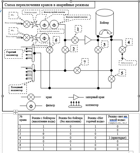 Этот режим также необходим на случай, если бойлер придется временно снять. В данном случае холодная вода подается, через кран №2 в холодный коллектор, а горячая вода, через кран №6 в горячий коллектор.