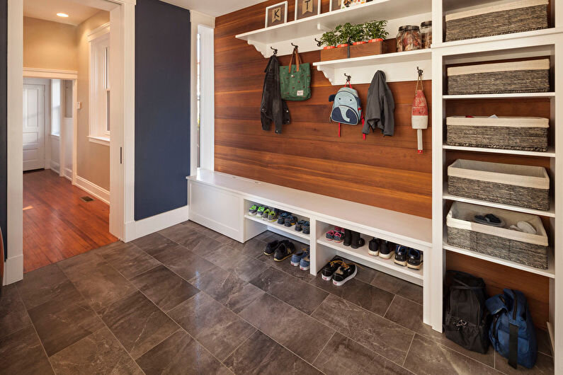 Натуральная древесина входит в число модных материалов по очень простой причине. Сейчас люди поняли вред пластика и прочих полимерных субстанций, они пытаются отойти от этого как можно дальше. Также дерево дарит очень приятную атмосферу. Его структура обеспечивает оптимальный баланс температуры и влажности в помещении. Интерьер деревянной прихожей оформить достаточно просто, если иметь опыт в этом направлении. Сейчас количество дизайнеров, занимающихся этой сферой, стремительно возрастает на пике популярности. Однако, это не только мебель, а огромное количество разнообразной отделки. Выбор сильно расширяется из-за возможности изготовления под заказ. Основные идеи Нужно изначально продумать всю концепцию, чтобы получить на выходе хороший результат. Дерево может использоваться для следующих необычных решений: - Отделка вокруг светильника. Деревянная плитка может играть роль качественной подложки. Это придаст интерьеру определенную солидность. Даже если использовать обычную люстру, то