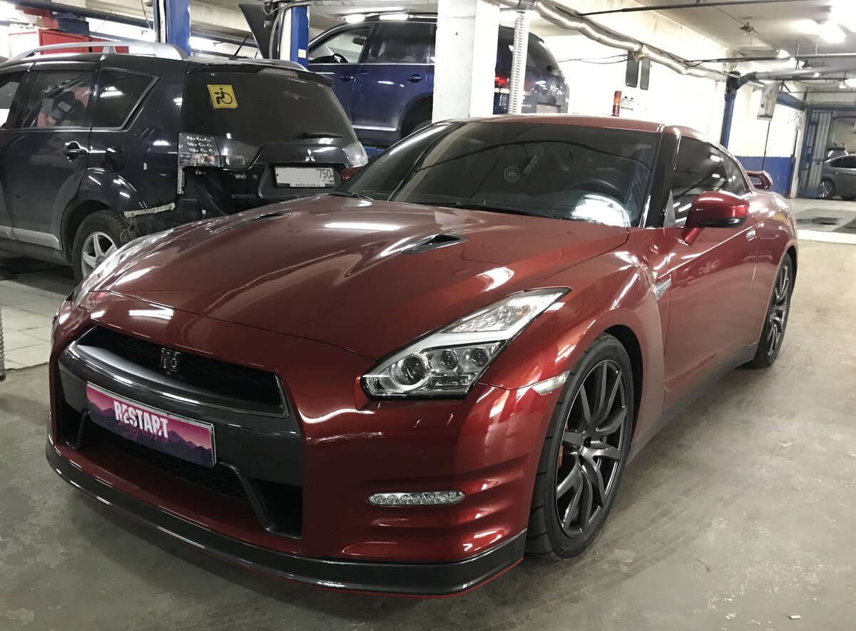 Автомобиль полностью покрыт бронеплёнкой, но несмотря на это, повреждения избежать не удалось. План работ: Покрасить задний бампер, диффузор, предварительно сняв защитную пленку с автомобиля. Визуально сразу и не понять, где спрятались повреждения. Ловим фокус, сейчас найдем, что же не так... Вот небольшое повреждение, которое необходимо исправить! Приступаем к разбору автомобиля! Все, готово! Оставили GT-R без бампера! Но это ненадолго! Упакуем под пленку, пока все будет краситься и готовиться к установке вновь! Разбираем все до винтика и болтика! Производим ремонт поврежденной части и готовимся к окрасу! Загрунтованный бампер, ждет своего часа! Необходимо провести тест, перед окрасом. Чтобы все по цвету сошлось. Бампер открашен, теперь можно устанавливать обратно! Отлично получилось! Необходимо немного полирнуть и готово! Теперь автомобиль готов покорять снова улицы М