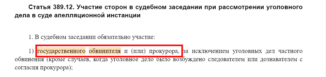 Кроме того, статус прокурора и гособвинителя имеет значение при обжаловании приговора.
