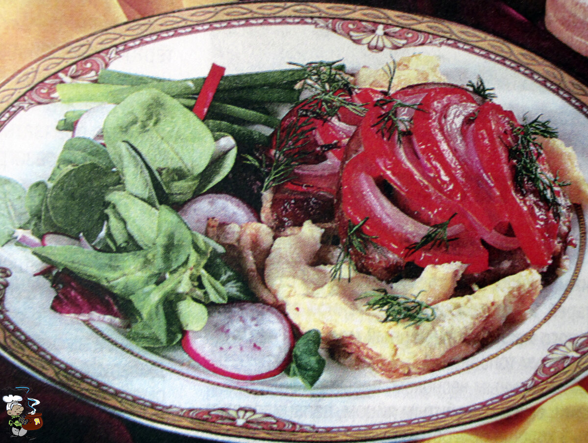 Свинина - 1кг; Лук репчатый – 2-3шт; Помидоры – 3шт; Яйца куриные – 3-4шт; Масло растительное; Соль, черный перец (молотый) – на ваш вкус; Для украшения: зелень укропа. 📝 Свинину нарежьте порционными кусочками. Помидорки порежьте дольками, как можно тоньше, репчатый лук – кольцами или полукольцами. Противень промажьте растительным маслом, уложите мясо, добавьте соли и специи. Поверх распределите помидоры и кольца/полукольца лука. Уложив овощи, отправляйте противень в разогретую до 180°C духовку, готовность блюда можно определить по мясу. 📝 Пока мясо запекается, взбейте яйца, добавьте немного соли и перца. Получившейся смесью залейте приготовленное блюдо. И верните противень в духовку ещё на 5-7 минут. Готовое блюдо перед подачей украсьте измельченной зеленью, приятного вам аппетита!