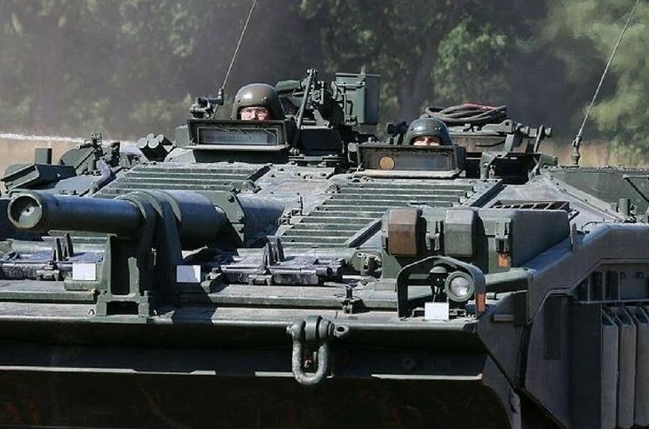 Как он стреляет? Орудием танка является 105-мм пушка, оснащенная кстати автоматом заряжения. Орудие жестко и неподвижно закреплено в корпусе, наводка на цель осуществляется поворотом и наклоном всего корпуса, в чем помогает электрогидравлическая система завязанная с подвеской. Поворот на 90 градусов занимает 2-3 секунды. Дистанция для попадания в цель типа «танк» оценивается в 4 км. Скорострельность до 15 выстрелов в минуту, при этом нужно обязательно делать короткие остановки для прицеливания, что конечно является минусом. После выстрела подвеска возвращает корпус в прежнее положение для повторного выстрела. Прицеливание и стрельбу могут вести как водитель так и командир.