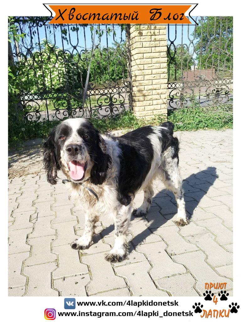 Здравствуй дорогой читатель «Хвостатого Блога» К сожалению, за последние две недели, у меня совершенно не было времени сесть за клавиатуру. Приболел "зубом мудрости", электричество отключали, а работы в приюте столько, что на статьи просто не было сил. Тем временем, накопилось такое количество новостей, что не знаю с чего и начать! Я безнадёжно отстал... Пожалуй, первым делом расскажу о нашем новеньком, который поступил в Донецкий приют «4 ЛАПКИ» в конце мая. Кого только не было в нашем приюте за эти годы... Знакомьтесь, русский спаниель - Джек. Как и почему он оказался на улице, остаётся только гадать,но очень похоже, что бродяжничает он уже не первый день... На теле присутствуют небольшие раны и ссадины. Добрые люди, привезли его из соседнего города. Они надеялись самостоятельно разыскать хозяев - посёлок-то небольшой, все друг друга знают, и несколько дней держали его у себя... Ничего не вышло( Вполне возможно, что он всё-таки не местный и живёт совершенно в другом рай