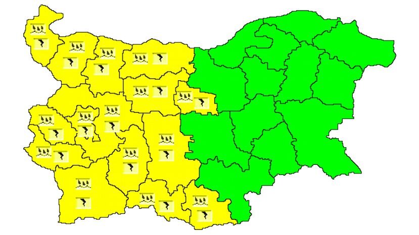 На сегодня, 4 июня, из-за обильных осадков и гроз в 15 областях Болгарии объявлен «желтый» уровень метеорологической опасности, показывают данные Национального института по метеорологии и гидрологии. Краткосрочные интенсивные дожди с грозами, градом и временным усилением ветра ожидаются в областях: Видин, Монтана, Враца, Плевен, Габрово, Ловеч, София – город, София – область, Перник, Кюстендил, Благоевград, Пазарджик, Пловдив, Смолян и Кырджали. В этих областях среднее количество осадков сегодня достигнет 20-25 л/кв.м. Из-за дождей и гроз в 15 областях Болгарии объявлен «желтый» уровень опасности