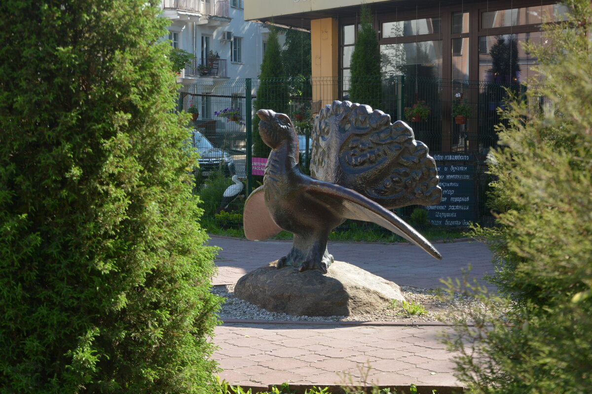 Скульптура "Глухарь" установлена на пересечении Большой Санкт-Петербургской и Стратилатовской улиц.