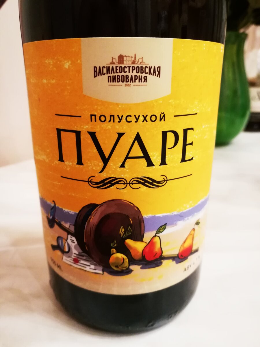 Всем привет! Вот и наконец-то наступило лето. Причем, погода в мае, в центральной России, не ступала летним месяцам. В такую жаркую погоду глаза не глядят на плотные, тёмные стауты и портеры. Хочется чего-то легкого, освежающего. В поисках такого напитка мы с женой, в выходной день, отправились в магазин разливного пива "Пифкофф". На глаза попалась бутылочка "Грушевый Пуаре" от Василеостровской пивоварни. Пуаре (“perry” у англичан или американцев) – это разновидность слабоалкогольного напитка, из сброженного сока груши. Некоторые называют данный напиток - сидр, но это неправильно. Пуаре самостоятельный стиль слабоалкогольного напитка. Бутылочка объемом 0,75 литра обошлась нам в 170 рублей. Состав: сок грушевый, дрожжи. Состав очень короткий. Спасибо производителю за натуральность. Никакой химии и ароматизаторов в составе нет. Описание: Производитель: ООО "Василеостровская пивоварня", г. Санкт-Петербург