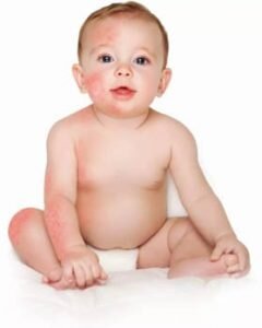Атопический дерматит — это хроническое рецидивирующие заболевание,в основе которого лежит воспаление кожи аллергического характера. Надо сказать ,что не все дети страдают данной патологией. Чаще всего это заболевание развивается у детей с генетической (наследственной)предрасположенностью к аллергии под действием факторов внешней и внутренней среды. При наличии аллергического заболевания у обоих родителей ,риск развития АтДу ребенка составляет 60-80 %, у одного из родителей до 45-50%.Риск формирования АтД у детей от здоровых родителей может достигать от 10 до 20%. Что вы видим на коже: У детей старше двух лет и до периода полового созревания болезнь проявляется несколько иначе.