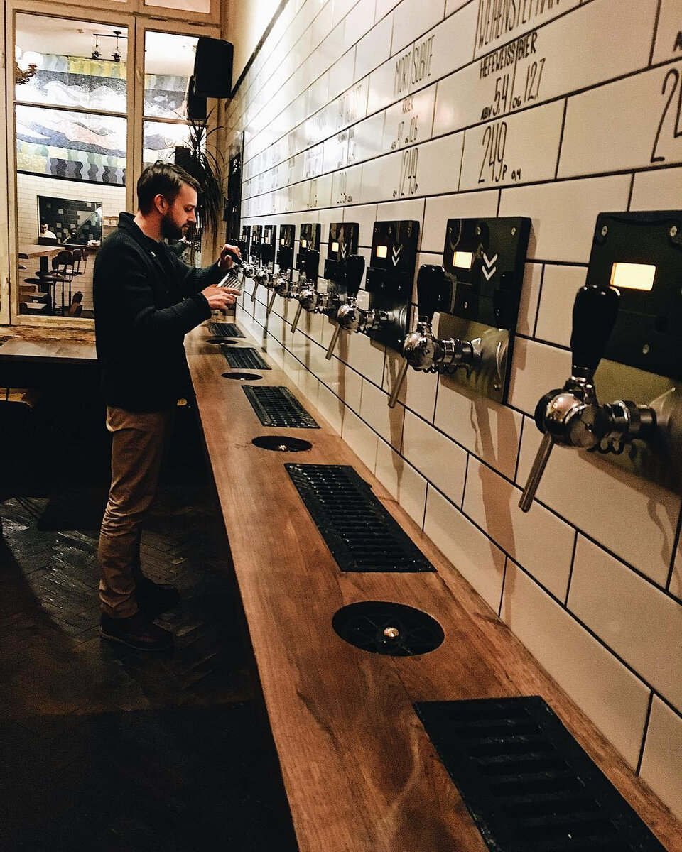 Заведение интересно тем, что работает, как обычная современная заправка. На входе вы получаете специальную карточку, на которую кладете определенное количество денег. Далее, чтобы получить кружку пива, вы самостоятельно подходите к кранам и наливаете. Только не забудьте карту приложить, чтобы прошла оплата. Ассортимент бара включает в себя несколько крафтовых сортов российского пива и довольно крепкие сорта зарубежья.