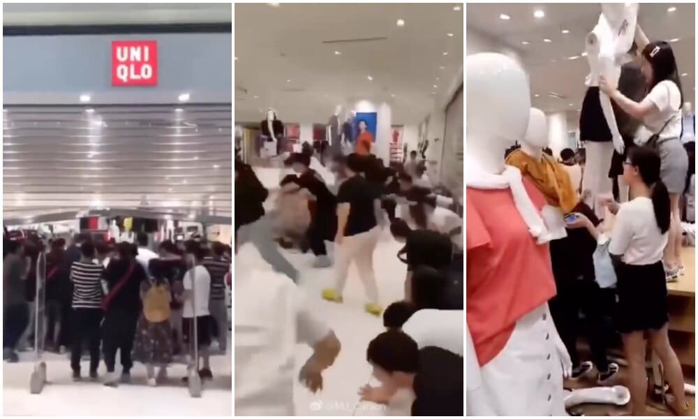 На роликах люди мчатся по пустынным коридорам к магазину Uniqlo и пролезают под ставнями, врываясь в него до открытия, яростно отталкивают друг друга с пути и играют в «перетягивание каната». Некоторые покупатели встают на стеллажи и снимают одежду с манекенов, другие берут весь тираж футболок вместе с вешалками, оставляя остальных желающих приобрести коллекцию ни с чем. В некоторых случаях дело даже доходит до драк.