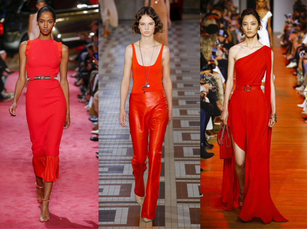 Каждый сезон команда Института цвета Pantone составляет отчет самых модных цветовых решений. На этот раз среди весенне-летних фаворитов оказались сочные оттенки оранжевого, желтого и красного цветов, немного приглушенной зелени, а также нежная роза и насыщенный синий цвет. Jester Red - глубокий бордо Элегантный и глубокий оттенок Jester Red, который обычно дизайнеры предпочитают использовать осенью в своих коллекциях, на этот раз украсил весенне-летние образы. Pink Peacock — Розовый павлин Смелый ярко-розовый оттенок покорил воображение дизайнеров. Так на подиуме появились лаконичный комбинезон Brandon Maxwell, эффектный брючный костюм свободного кроя Escada или театральное платье No.21, украшенное перьями марабу. Aspen Gold — Золотая осина Невозможно представить лето без сочных и ярких оттенков. Так, в новом сезоне среди любимчиков дизайнеров оказался солнечно-желтый оттенок Aspen Gold, который очень скоро станет главным героем стритстайл-хроник. Pepper Stem – Стебель перца При