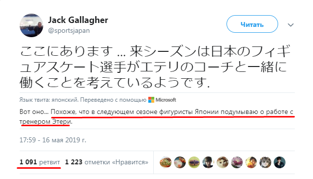 В последнее время из Японии поступают странные слухи. Все началось с того, что один из известных журналистов в мире фигурного катание Джек Галлахер (портал Japan Time, раздел "Ice Time") выложил твит неоднозначного содержания: Сообщение звучало туманно и было не совсем ясно, что подразумевал журналист. Подумывать о работе с Этери Тутберидзе и договориться о постоянном сотрудничестве - совсем не одно и то же. Однако этот твит вызвал в сети большой резонанс, для этого достаточно взглянуть на количество ретвитов - больше тысячи. Обеспокоенные японцы сразу же принялись размышлять на тему, кого следует отправить к нашему известному тренеру. Среди кандидатов были и Рика Кихира, и Марин Хонда, и молодые малоизвестные японские фигуристы, но чаще всего звучало имя Шомы Уно. Тогда подобные рассуждения казались пустым сотрясанием воздуха на ровном месте. Однако на днях на официальном сайте Шомы выложили информацию о том, что фигурист прекращает сотрудничество с тренером, которая вела его с 5 лет: