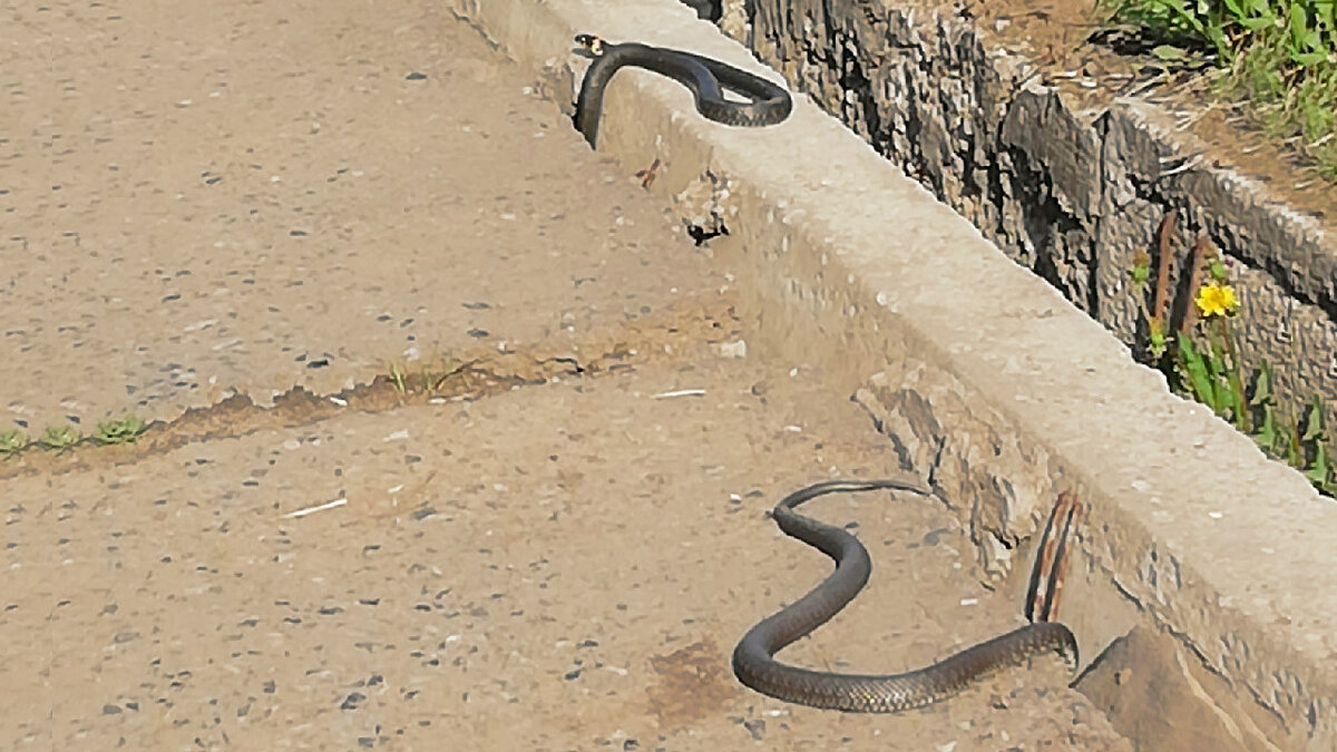 Жители Котельнича опасаются ходить по улицам из-за змей, которые выползают на городские тротуары, чтобы погреться на солнце. Причём не только поодиночке, но и целыми группами. Так, буквально на днях юная котельничанка сфотографировала двух змей, ползающих по асфальту на улице Советской близ Динопарка. Судя по фото, Котельнич оккупировали ужи, однако гарантии, что выйдя из дому вы не встретите по пути какую-нибудь болотную гадюку, никакой нет. Фото: kotelnich.my1.ru