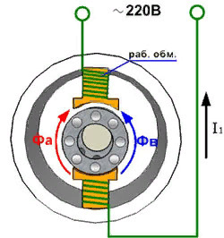 Когда на обмотку статора мотора приходит однофазный переменный ток, переменный ток начинает проходить через статор или основную обмотку. Этот переменный ток порождает переменный магнитный поток, который называют основным магнитным потоком.