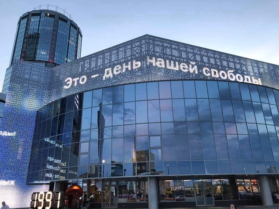 В Екатеринбурге на медиафасаде Ельцин центра появились вот такие слова.