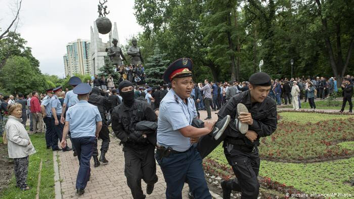 Так в Казахстане встречают нового президента В Казахстане 9 июня завершились президентские выборы. Более 70% набрал преемник Нурсултана Назарбаева — председатель Сената страны Касым-Жомарт Токаев. Не все были согласны с итогами проведенных в стране выборов. На улицы Алма-Аты и Нур-Султана (ранее Астана) вышли сотни человек выразить протест «недемократичным выборам». Полиция действовала жестко. По разным оценкам задержано от 100 до 1000 человек. К сожалению, не обошлось без жертв. Одному из протестующих полицейский нанес удар резиновой дубинкой. От удара человек потерял сознание и скончался. В последние годы в Казахстане усиливается контроль над всей оппозицией. Любые акции протеста сурово наказываются. Порой доходит до откровенного абсурда. Так в прошлом месяце полиция похитила девушку с воображаемым плакатом. Насилие со стороны государства может лишь временно притормозить народный гнев и злобу. Ведь если сажать всех недовольных, жизнь не улучшится. Или власти Казахстана думают, что см