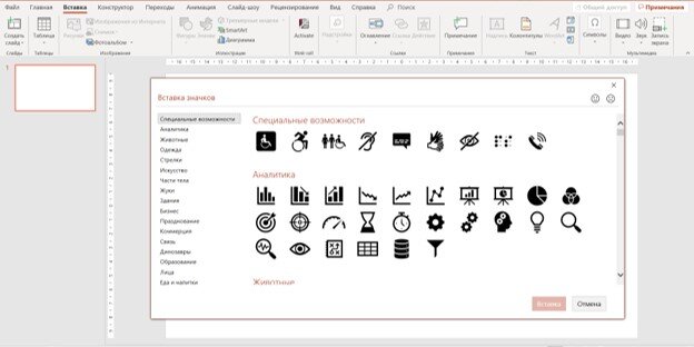Добавим немного визуального оформления в наши презентации. Простой способ – использовать иконки! Для этого не нужно искать дизайнера и заказывать у него работу. Сам Power Point предлагает небольшой набор иконок. «Вставка» - > «Значки». С каждым обновлением количество значков увеличивается, так что не забывайте обновлять Office! Если этих значков недостаточно. Есть ресурс, где можно найти бесплатные иконки на любой вкус. Называется Flaticon - https://www.flaticon.com/. Сайт заграничный, поэтому для поиска вводите слово на английском. Помните, не обязательно вводить точное слово, картинка которого вам необходима. Подумайте, с чем это можно ассоциировать. Например, для обозначения процесса часто используют значок шестеренки или стрелочек. Не забывайтесь, и используйте иконки одного стиля. Иначе оформление презентации может стать безвкусным.