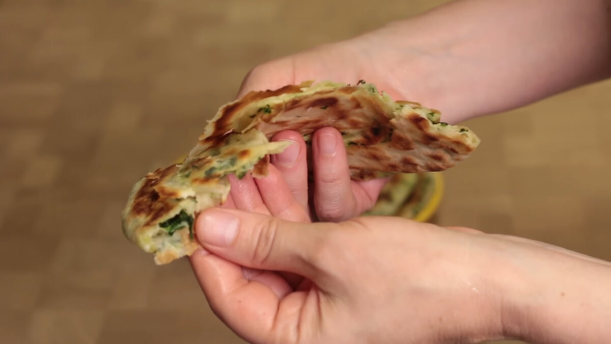 Слоеные китайские лепешки с зеленью