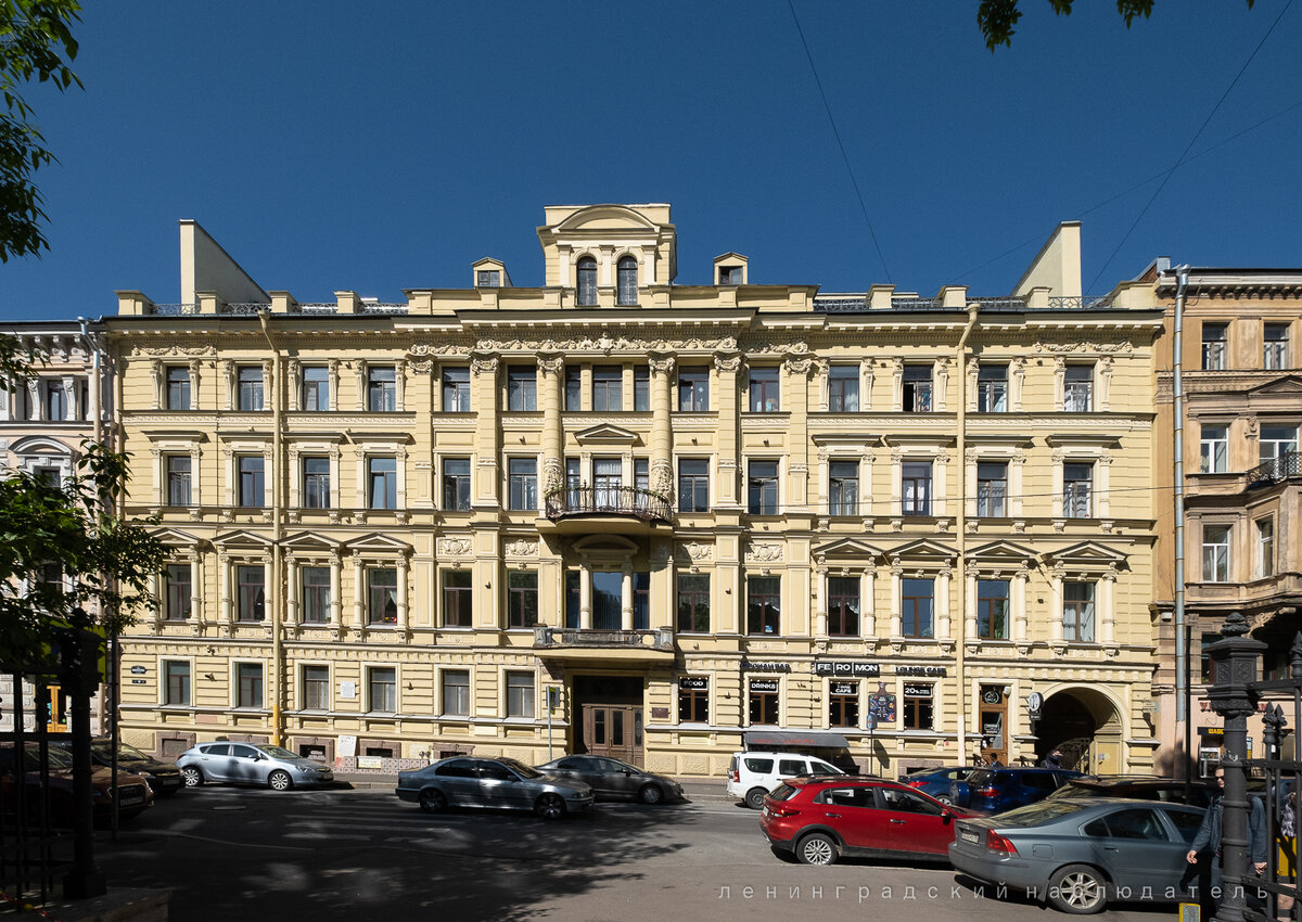 Про доходный дом братьев Елисеевых на улице Ломоносова я уже писал некоторое время назад, но на этой же улице есть ещё один доходный дом, постройки 1894 года, в котором хотелось побывать, т. к. я знал, что у него красивая парадная. И вот недавно у меня это получилось. Вот этот дом.