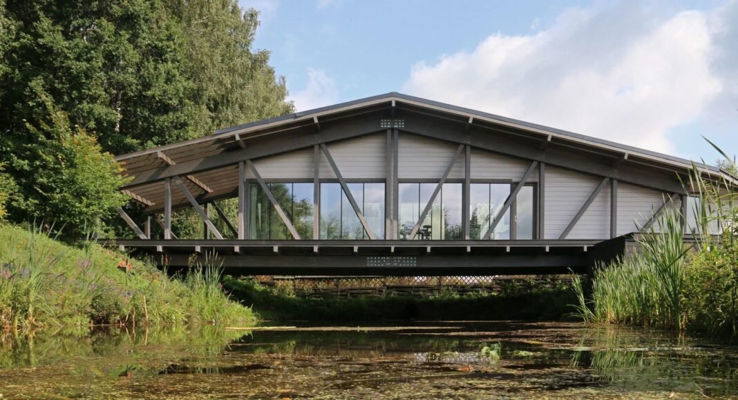 В Тульской области построили уникальный дом-мост, который «парит» над рекой. Такое необычное дизайнерское решение принадлежит биоархитектору Ивану Овчинникову. Автор говорит, что идея пришла к нему неспроста, а была вызвана необходимостью преодолеть такое препятствие, как вода. Конструкция дома-моста Дом-мост изготовлен из экологичных материалов по технологии ДубльДом, суть которой заключается в том, что все элементы (модули) конструкции создают в цеху, а затем привозят на машинах и собирают буквально за несколько дней. Задача была усложнена лишь постройкой самого деревянного моста. Он должен был стоять на балках, упирающихся исключительно в берега, и не имеющих под собой никаких опор и колон. То есть, между мостом и рекой ничего нет. Тем не менее, опорная конструкция достаточно прочная, чтобы поддерживать здание. Внутри дома общей площадью 150 м2 есть гостиная, кухня и две спальни. В помещении достаточно свободного пространства, а фасад из больших стеклянных панелей пропускает много с