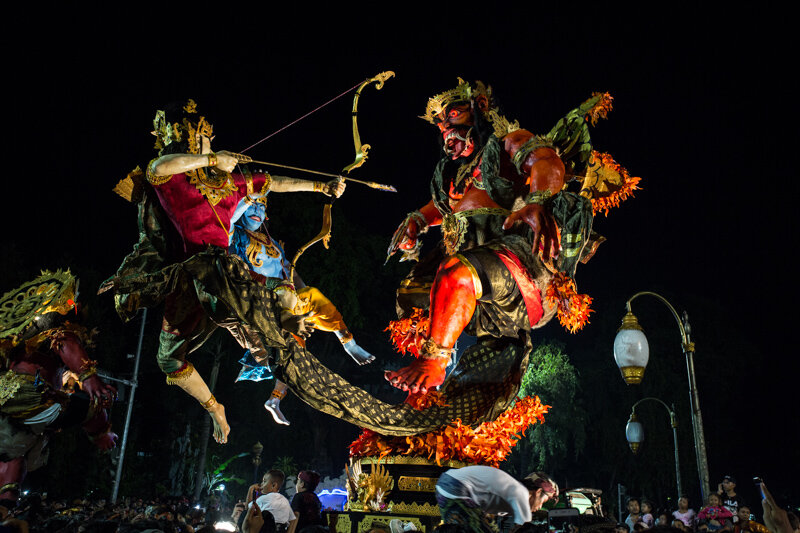 Вы любите мистику? А красочные праздники? Огромных кукол? Звенящую тишину? Посмотрите, как празднуют наступление нового года - Ньепи - на острове Бали! Начнём с практической информации, которая пригодится вам, если вы собираетесь на остров (или в отпуск, но ещё не решили куда) в марте 2020 года. Ньепи в 2020 году наступает 25 марта. Это "переходящий" праздник, который зависит от лунного календаря, и у которого нет постоянной даты. Самое интересное - парад огромных кукол - происходит накануне, а не в сам День тишины, но относится непосредственно к нему, а также имеет несколько сложных названий, так что простите мне эту неточность. Церемонии, связанные с Ньепи, начинаются за 3-4 дня до самого Дня тишины. Почему его называют День тишины? Я обязательно расскажу чуть ниже. Первая из церемоний - Меласти. Это церемония очищения, когда верующие (а все коренные жители Бали - верующие индуисты, это неотъемлемая часть их культуры) выносят к морю, речке или озеру храмовую утварь, и омывают её. Р