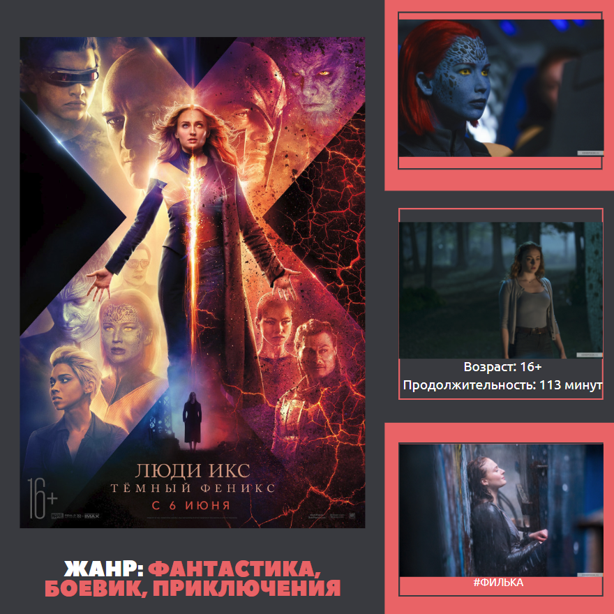Что же приготовила нам первая неделя лета? Люди Икс: Тёмный Феникс История Джин Грей, которая разворачивается в тот момент, когда героиня превращается в культового Тёмного Феникса. Во время опасной для жизни спасательной миссии в космосе девушка оказывается поражена таинственной космической силой, которая превращает её в одного из самых могущественных мутантов. В борьбе с этой всё более изменчивой мощью и со своими собственными демонами Джин выходит из-под контроля: раскалывает семью Людей Икс и угрожает уничтожить всю нашу планету. Рокетмен История превращения застенчивого парня Реджинальда Дуайта, талантливейшего пианиста из маленького городка, в суперзвезду и культовую фигуру мировой поп-музыки Элтона Джона. Домино Офицер полиции Копенгагена жаждет отомстить за смерть напарника от руки некоего Имрана. Охоту на убийцу он ведёт в компании с любовницей погибшего коллеги. Однако оба они становятся жертвами агента ЦРУ, подставившего Имрана. Мы всегда жили в замке История семьи о