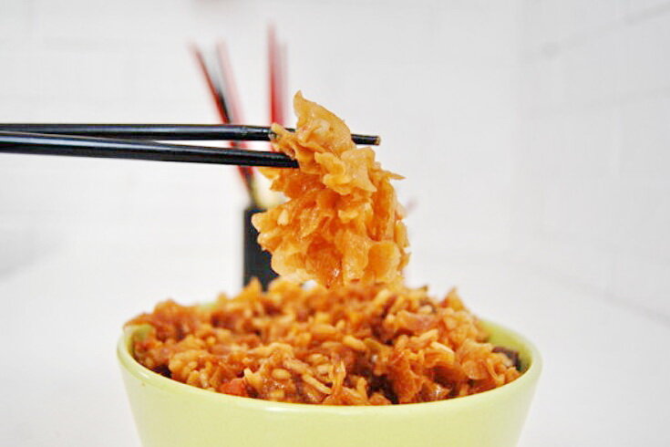 Простое, очень вкусное и сытное блюдо из белых коралловых грибов. Грибы легко найти во всех магазинах восточных товаров, также они есть во многих крупных супермаркетах. Тем не менее, в России белые коралловые грибы не очень популярны, а зря – они не только обладают превосходным нежным вкусом, но и очень питательны: содержат большое количества белка, много клетчатки, витамин D (отличный аргумент для невегетарианцев: в белых коралловых грибах витамина D больше, чем в пресловутой печени трески), кальций, фосфор, калий, железо, магний, а также целых 18 аминокислот. Рис с белыми коралловыми грибами и соевым соусом Белые коралловые грибы можно использовать так же, как обычные грибы: тушить, жарить, добавлять в крупы, пасты и салаты, просто подавать с соусами. Кроме того, они очень эффектно выглядят при подаче на стол. Итак, для риса с овощами и белыми коралловыми грибами нам понадобится: 1. Рис (лучше, конечно, неочищенный) 2. Белые коралловые грибы (они обычно продаются в сушеном виде в ма