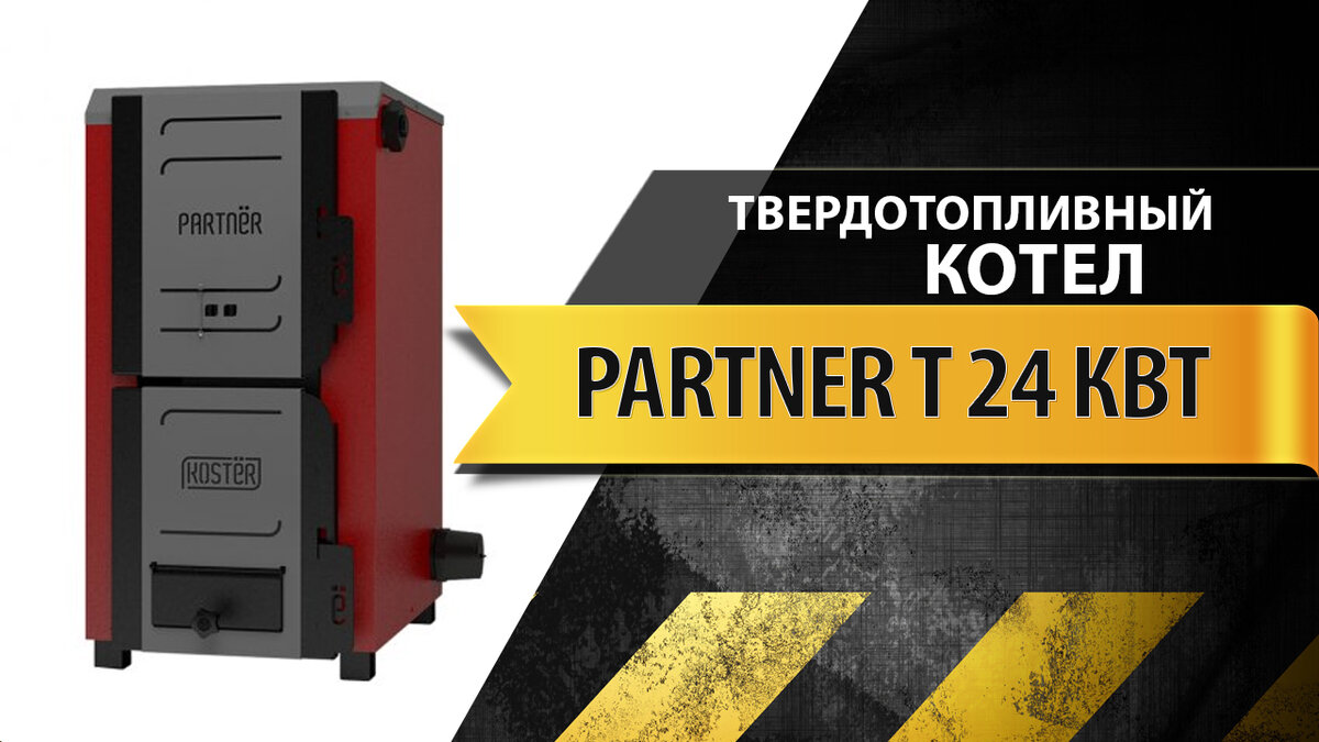 Здравствуйте, сегодня у нас обзор твердотопливного котла Партнер Т мощностью 24 киловатт. Котел Партнер изготавливается компанией Костер, расположенной в городе Новосибирск. Гарантия завода изготовителя на котел 3 года, прогнозируемый срок службы при правильной эксплуатации не менее 10 лет. Это компактный, мощный одноконтурный котел для помещений, оборудованных системой водяного отопления с естественной или принудительной циркуляцией площадью до 240 м2. КПД котла 82 %. Основным видом топлива являются дрова, топливные брикеты и уголь. Также возможно подключение блока ТЭНов, для поддержания температуры теплоносителя после сгорания топлива. Комплектация котла Костер Партнер Т 24 : Габаритные размера котла Костер Партнер Т 24 : Присоединительные размеры: Котел изготовлен из стали 09Г2С толщиной 3 мм. Стенки топки постоянно охлаждаются теплоносителем - поэтому этой толщины вполне достаточно для многолетней эффективной работы котла. Поверхности котла теплоизолированы и облицованы дек