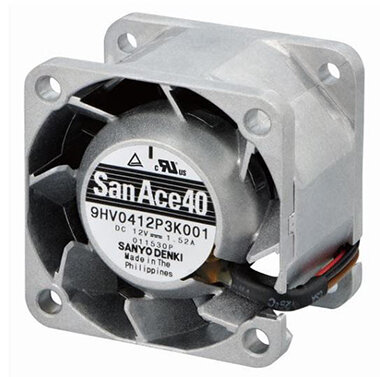 Вентиляторы высокого статического давления Sanyo Denki серии San Ace 9HV обеспечивают более эффективное охлаждение устройств по сравнению с вентиляторами постоянного тока широкого применения. Например, вентилятор 9HV3612P3K001 обеспечивает максимальное статическое давление 1400 Па и максимальный поток воздуха 0.72 м³/мин. По сравнению со стандартной моделью (9GX3612P3K001) давление увеличилось в 1.67 раза, а поток возрос в 1.04 раза. Вентиляторы поставляются с функцией управления ШИМ-сигналом для внешнего управления скоростью вращения, что способствует снижению шума и повышению энергоэффективности устройств. Встроенные функции защиты от подключения источника питания неправильной полярности и блокировки ротора повышают надежность эксплуатации. Вентиляторы Sanyo Denki San Ace 40 9HV подходят для охлаждения серверов 1U и импульсных источников питания высотой 1U, оптического передающего оборудования и других устройств с высокой плотностью компонентов. Особенности: Производители: Sanyo Ра