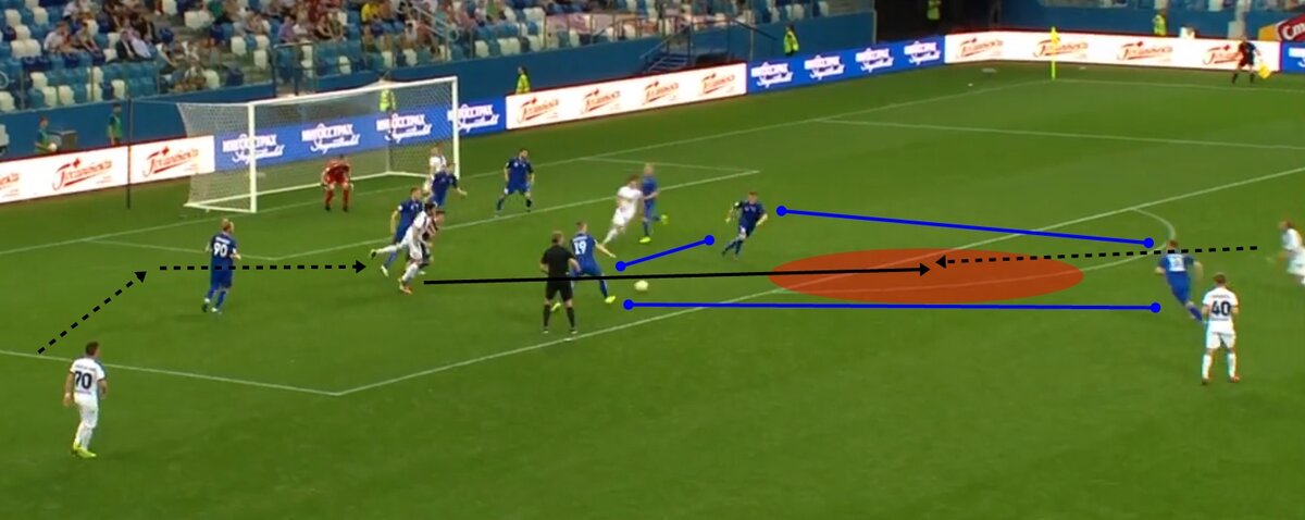 Карп начинает встречную атаку «Уфы» успешным отбором в центре поля. Он же оказывается внутри в штрафной на 11-метровой отметке при ее завершении. Опорные хавбеки «Томи» располагаются вертикально и оставляют своего правого защитника Печникова в одиночку караулить двух соперников. Карп же выполнил неясный этюд пяткой. То ли хотел красиво забить, то ли проталкивал мяч дальше на Сухова, но тот ждал пас еще за пределами вратарской.