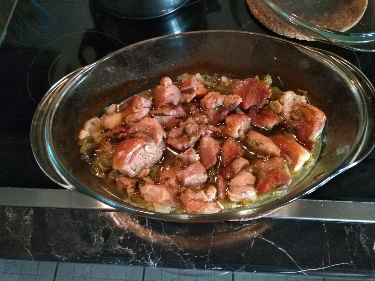 Всем привет! Не знаю, почему это блюдо так называют, что в нем грузинского (по-моему, ничего) В общем, купил я килограмм свиной бескостной лопатки в одном сетевом супермаркете за 209 рублей. В меру жирная, то, что мне надо для приготовления данного блюда. Мясо порежем некрупными кусочками, лук- полукольцами, чеснок измельчим, насколько хватит Вашего терпения, зелень - тоже. Теперь обжарим посоленное, поперченное мясо на сильном огне. Используем при этом растительное масло. Затем соленые огурцы, зелень, немного огуречного рассола Тушим часа полтора при 170-180 градусах. Все, блюдо готово. Рекомендую с рассыпчатым рисом. Всем добра и приятного аппетита!