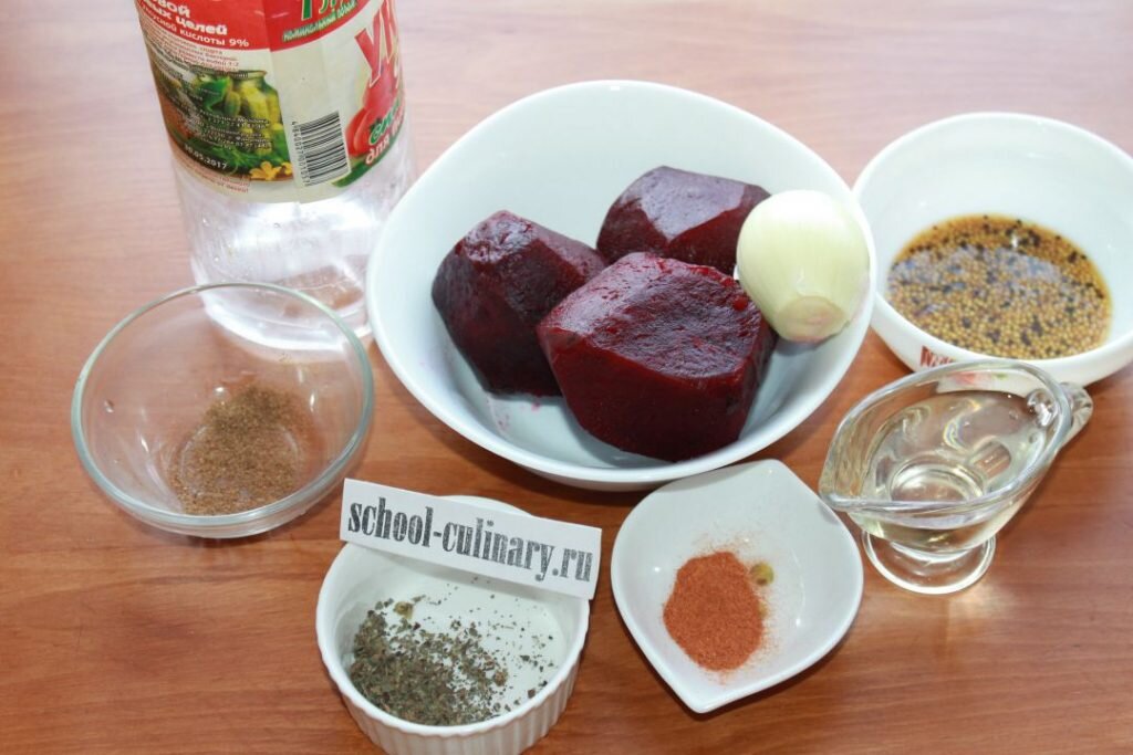 Яркого салата со свеклой и луком всегда мало. Он очень вкусный и аппетитный. Прекрасно подойдет как дополнение к мясным блюдам. Оригинальная заправка из горчицы и ароматных трав, пряных специй, уксуса понравится своей пикантностью. Рецепт несложный. С ним сможет справиться и непрофессионал. Ингредиенты: Приготовление: Свеклу моем и отправляем в кастрюлю. Заливаем холодной водой, варим в мундирах после закипания 40 минут. Время индивидуально и зависит от величины корнеплодов и мощности огня. Чтобы ускорить время варки, нужно разрезать большую свеклу на четверти. Можно запечь свеклу в духовке, завернув в фольгу. Готовые овощи извлекаем из воды, охлаждаем, очищаем и нарезаем соломкой. Репчатый лук очищаем и ополаскиваем. Чтобы не плакать, можно лезвие смочить холодной водой. Нарезаем луковицу полукольцами. Подготовленные овощи соединяем в миске. Добавляем зернистую горчицу. Если нет такой, можно использовать обыкновенную столовую, но вкус будут чуть другим. Зерна так приятно взрываются